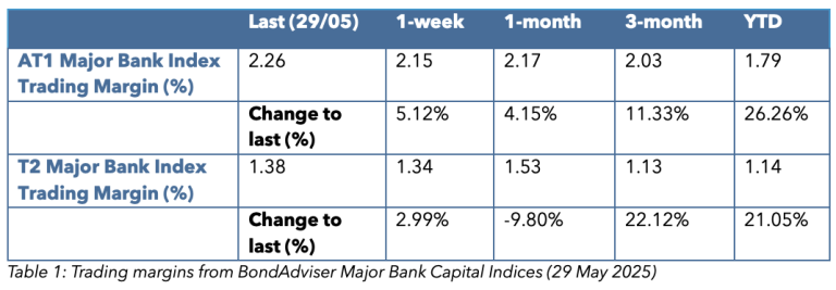 Table 1: BondAdviser Major Bank Capital Indices (29 May 2025)
