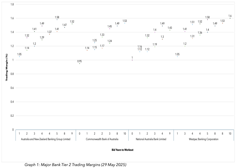 Graph 1: Major Bank Tier 2 Trading Margins (29 May 2025)
