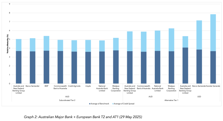 Graph 2: Australian Major Bank + European Bank T2 and AT1 (29 May 2025)