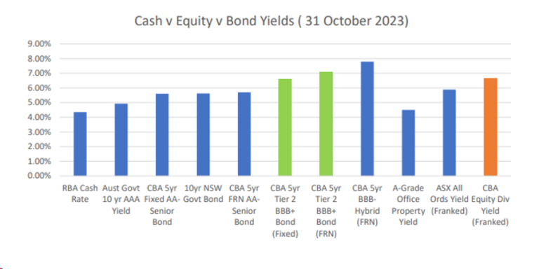 Of course, investors have different risk appetites and different needs in terms of income, and (very importantly) may have very different abilities to replace capital that is lost in adverse market moves. This can be very important, especially right around retirement age. As can be seen above, there is only a 40-50 basis points difference between CBA’s hybrid returns and its safer tier 2 bond returns. Both exceed the dividend yield (including franking credits).